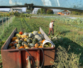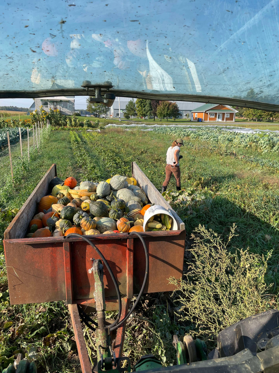 Afin de répondre à la demande des cuisines d’Au Pâturage ainsi que de notre deuxième restaurant, Bibine Buvette, les cultures sont diversifiées - légumes, fleurs, plantes aromatiques – et produites sur deux acres en culture transition vers le semi-mécanisé, mais encore principalement en travail manuel.