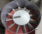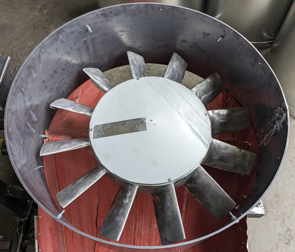 Système de lutte contre le gel (printemps/automne) qui prend l'air plus chaud en haut (environ 14 pieds du sol) et le souffle dans la zone des fruits. Inspiré d'un équipement disponible en Europe (f-airgo.com), serait plus efficace que les tours à vent pour petit vignoble, ne mélange pas toute la couche d'air. L'air plus chaud est soufflé directement sous la couche d'inversion sans la mélanger. Il suffit de circuler entre les rangs et de repasser au même endroit en moins de 10-12 minutes pour l'efficacité maximale. Fabrication domestique.