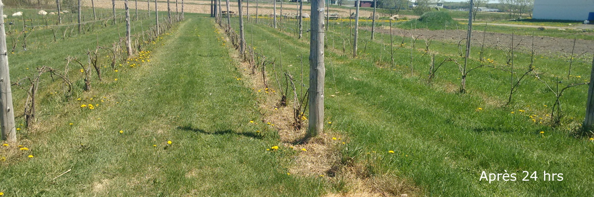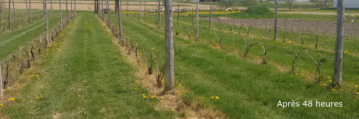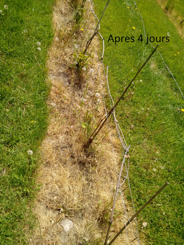Contrôle de l'enherbement sous le rang sans travail mécanique ni main d’œuvre manuelle depuis 5 ans dans notre vignoble.