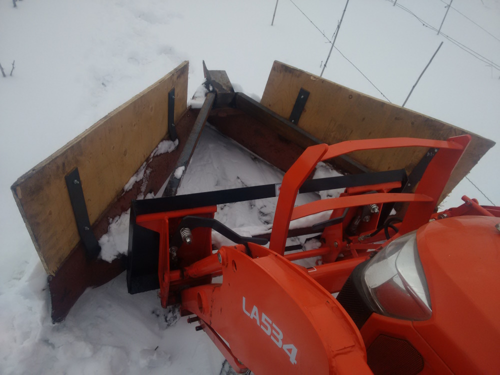 Chasse neige sur chargeur frontal, largeur environ 55 pouces (pour rangs espacés de 7 à 8 pieds environ)