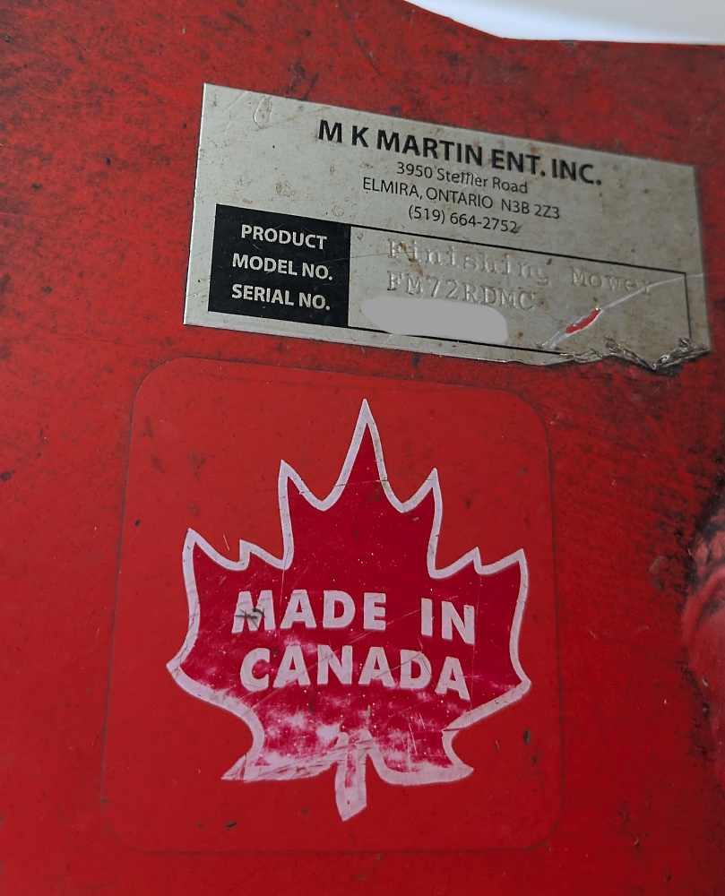 Tondeuse de finition 72 pouces usagée (Mk Martin fabriquée en Ontario). Acheté neuve en 2013.